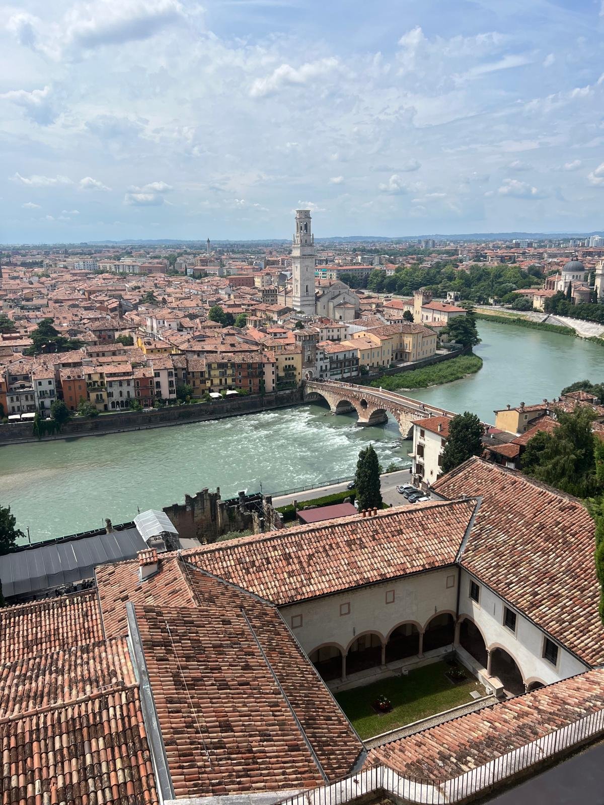 Visit Juliet’s House early, then walk to Piazza delle Erbe and Torre dei Lamberti. Enjoy lunch nearby and head to Castelvecchio and its bridge. Dinner by the river.
